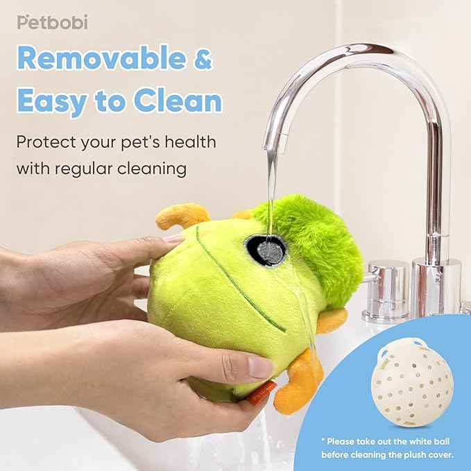 - Easy to Install and Clean: Petbobi interactive dog toys are easy to install and wash. To install, simply unfasten the Velcro, unscrew the battery cover with a screwdriver, and insert the battery. The plush cover is also washable. To clean it, open the Velcro, remove the bouncing ball, wash the plush cover, and let it dry