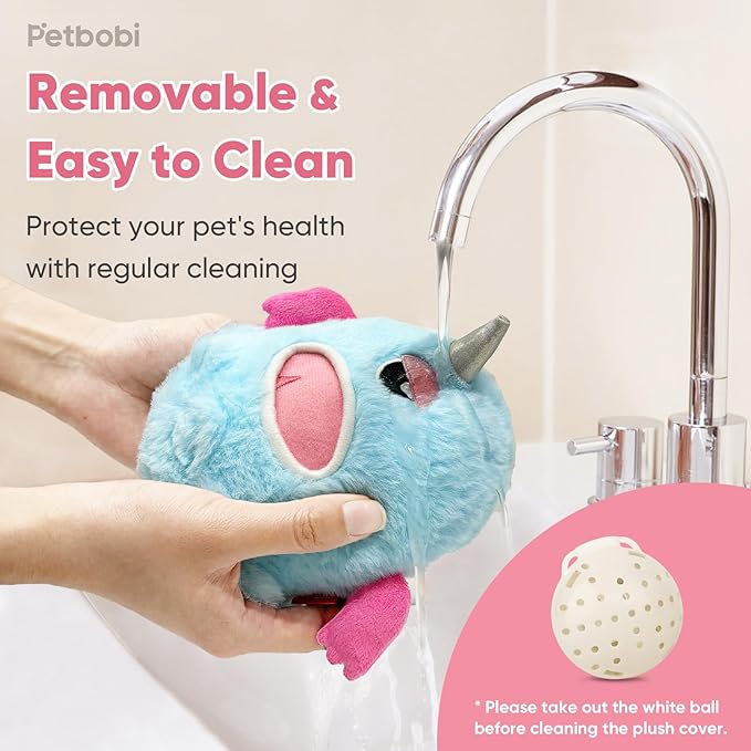 - Easy to Install and Clean: Petbobi interactive dog toys are easy to install and wash. To install, simply unfasten the Velcro, unscrew the battery cover with a screwdriver, and insert the battery. The plush cover is also washable. To clean it, open the Velcro, remove the bouncing ball, wash the plush cover, and let it dry