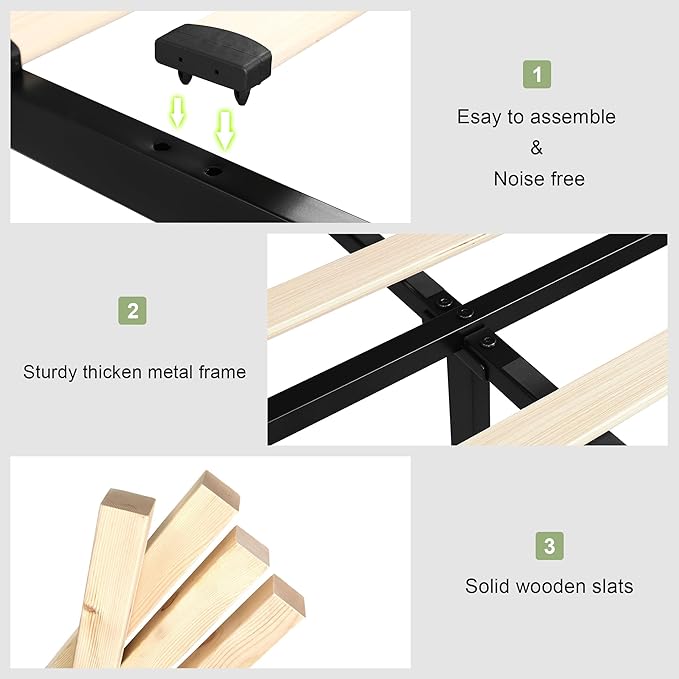 - Noiseless & No Box Spring Needed: EVA Foam is covered with metal slats, making it quiet and the Velcro on the base secures each slat tightly held. The sturdy construction supports the mattress well without the need for a box spring