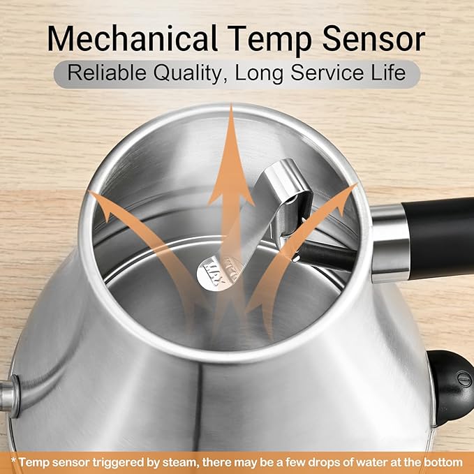 - Durability: Unlike other electric kettle made of plastic or easy faulty temperature sensor, its stainless steel mechanical temp sensor is more reliable and durable, it expanded its serving life a lot.