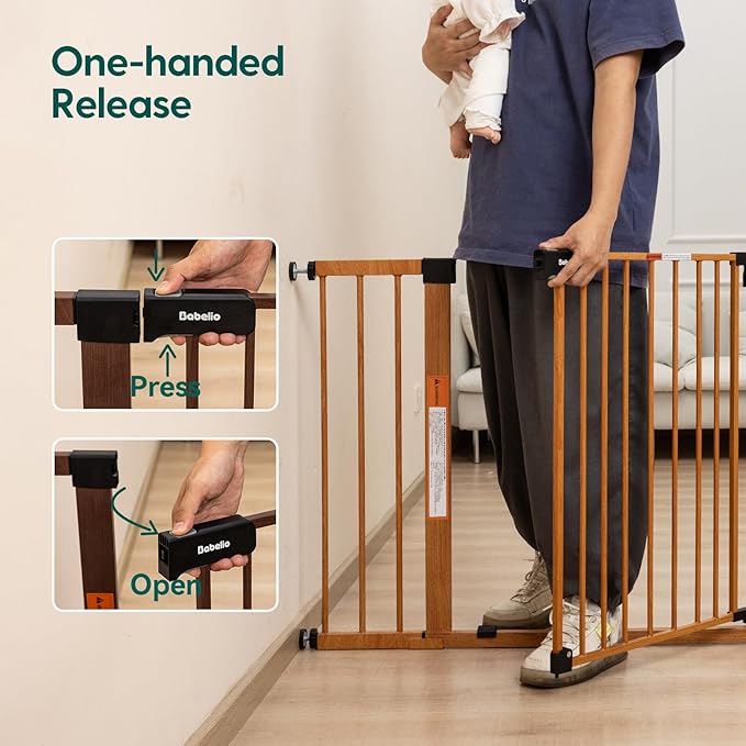 - AUTO-CLOSE FEATURE β For added hands-free convenience, the child gate is equipped with an auto-close feature that when the angle is less than 90 degrees, the gate will automatically close and stay open at angles greater than 90 degrees.Adults can easily open using one hand but it is difficult for babies.