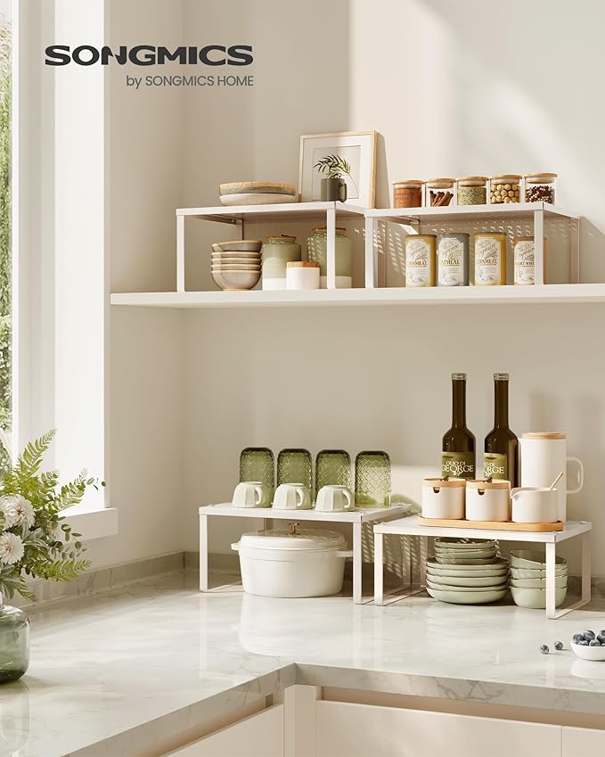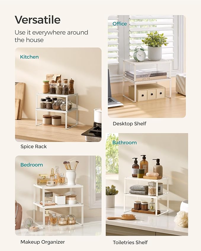 SONGMICS Spice Racks, Set of 2 Metal Cabinet Shelf Organizers, Countertop Organizers, Shelf Risers, Stackable, Expandable, Oatmeal Beige UKCS001K01
