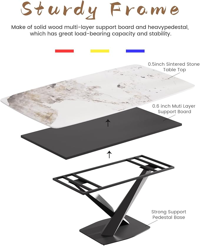 - š¤ćSintered Stone Table topćThe white marble stone top dining table is manufactured by rock burning with high-pressure and 1200 high-temperature, which is more durable than wooden dining table, and there is no need to worry about damage due to high temperature By the way,its X-shaped solid carbon steel base make it more durable,which can give table great support without any shaking or sliding.661lb is not a question.