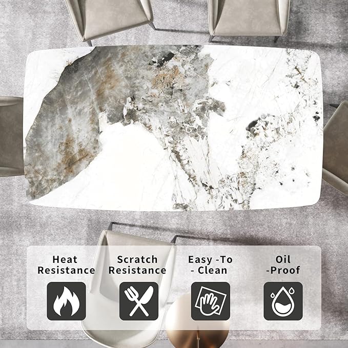 - š¤ćNice AppearancećOur rectangle marble dining table with minimalist aesthetics design will make your house more Elegant .Whether you are hosting family gathering, office meeting or leisurely meal, this marble sintered stone dining table will meet your needs.Especially,good for home living room, studio, apartment, etc.