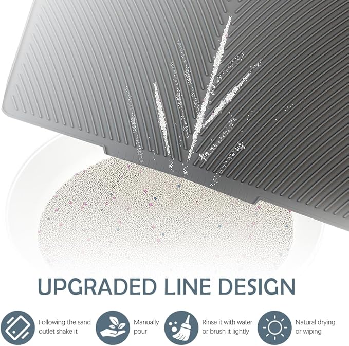 - 【Efficient Cat Litter Trapping Mat】This silicone cat litter mat waterproof litter catcher mat use of an arch designed, when cats to hold up their feet to leave cat mat after using the toilet, that can easily catch the falling litter from the cat's paws. It is more thinner, softer, easy to cleaning and more lover by cats. Upgraded surface texture can more efficient to collects and holds the litter, keep your home and pets clean and tidy.
