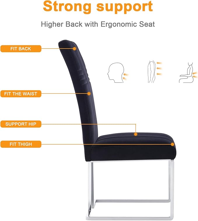 AUZ Dining Chairs Set of 8, Black and Silver Dining Chairs with Velvet Upholstery and Mirrored Silver Sled Legs