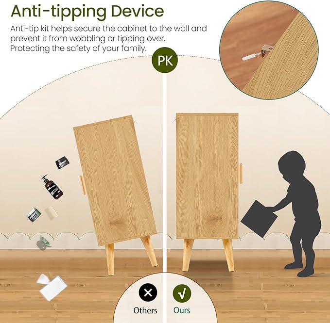 - ⭐【Sturdy & Durable Construction】Premium engineered wood with thickened solid wood legs makes the storage cabinet more sturdy and stable to withstand long-term use. 4 thickened, slightly angled legs are more supportive(Weight Capacity: 150lb). Just wipe it with a damp cloth to keep it clean and looking its best!