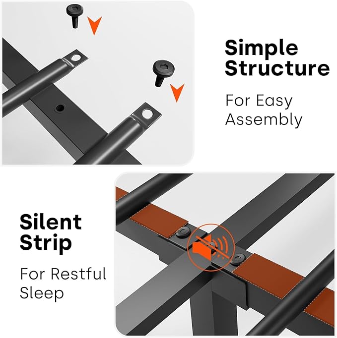 - Goodbye to Squeaks: Silent foam tape and embedded design of king size bed frame to create a quiet comfortable bedroom environment