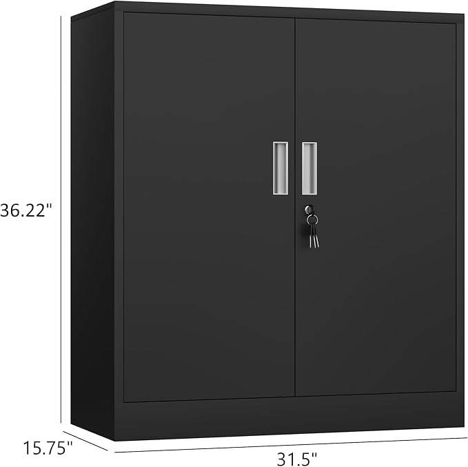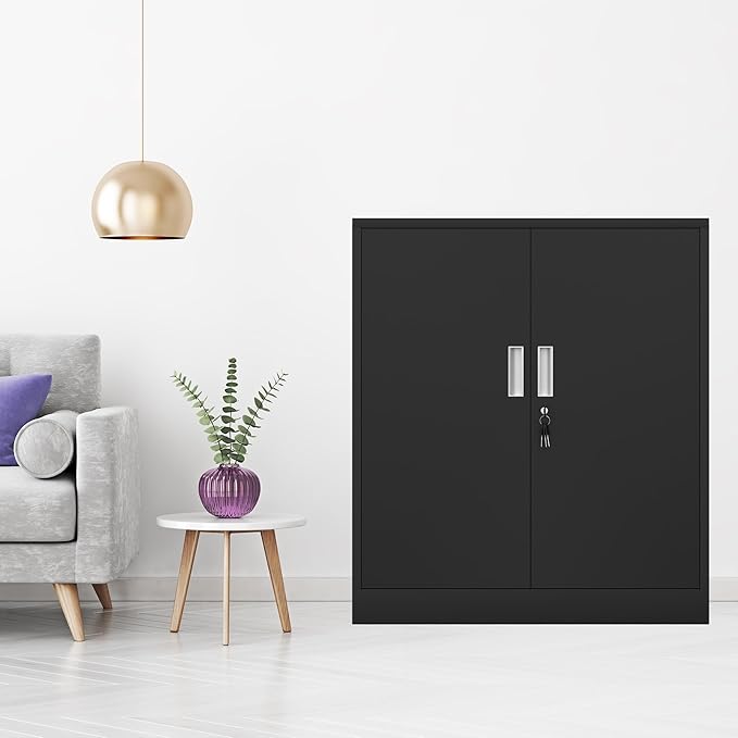 Metal Storage Cabinet with Locking Doors and 2 Adjustable Shelves, Small Lockable Storage Cabinet for Home Office Garage (Black)