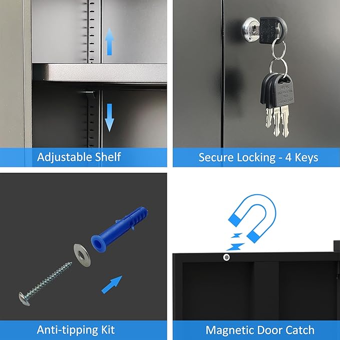 - VERSATILE FUNCTIONALITY - This locking cabinet can be used in home, office, garage, utility room, workshops or anywhere needs to get de-cluttered