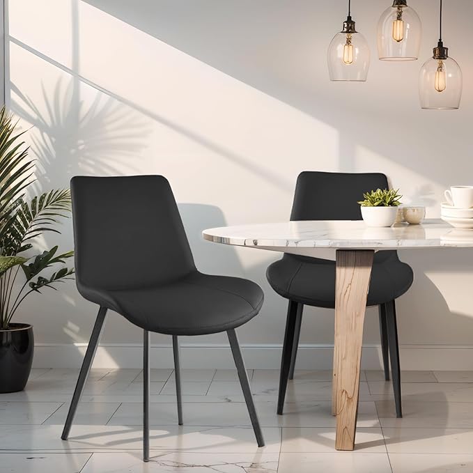 - COMFORTABLE DINING CHAIRS: Our kitchen chair is made of PU leather and the cushion and backrest are integrated. Extra thick cushions and the wide seat has plenty of room to sit down, the dining side chair has softer and thicker padded seat and backrests to ensure sitting comfortable and relax.