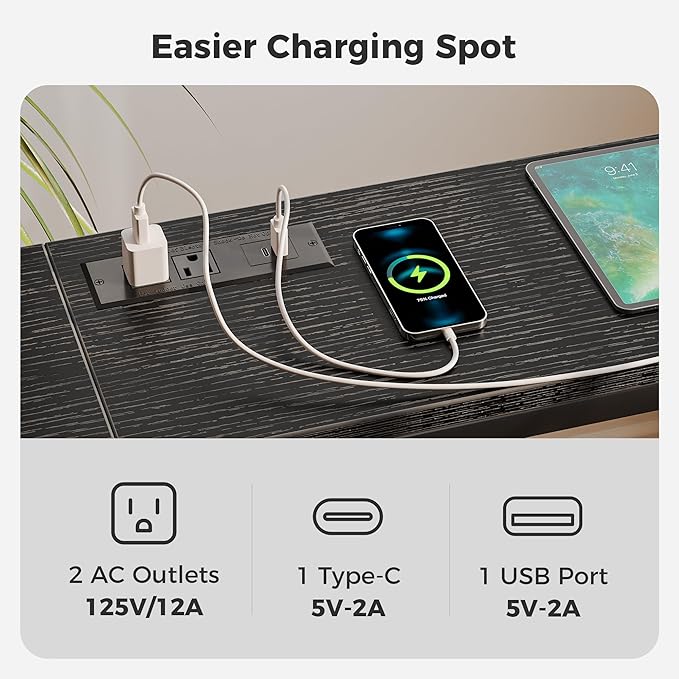 - [Welcome Power Outlets]: Invite this narrow console table to inspire your life! 2 outlets, 1 USB Port and 1 Type-C port are totally enough for your charging needs. Lamps, phones, iPad, fans, even decorative light strings are all covered