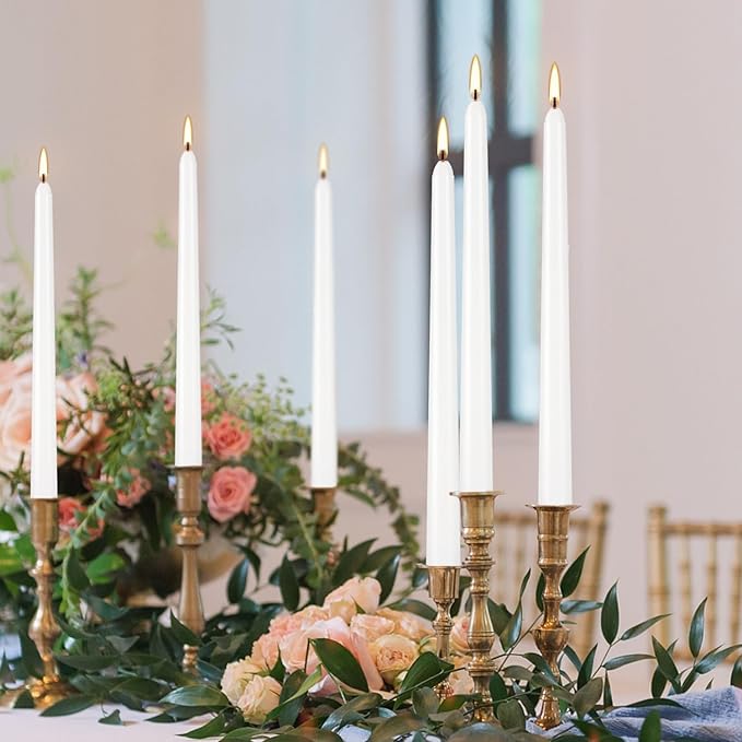 - DRIPLESS CANDLE: Our taper candles are made from paraffin with a cotton wick. They're 100% dripless and smokeless. ***Note: Candles are dripless as long as you keep them away from breezes!