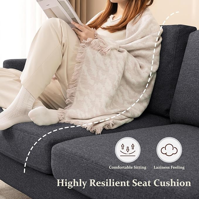 - DURABLE FABRIC. Our two-seater sofa features a linen-like fabric with a special texture, offering an eco-friendly, stain-resistant, and durable solution that is easy to maintain. Its unique blend of durability and aesthetic appeal ensures long-lasting beauty.