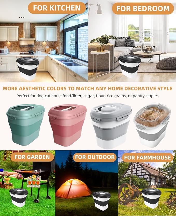 - SPACE-SAVING : Our dog food container is foldable, making it easy to store and saving precious space in your home
