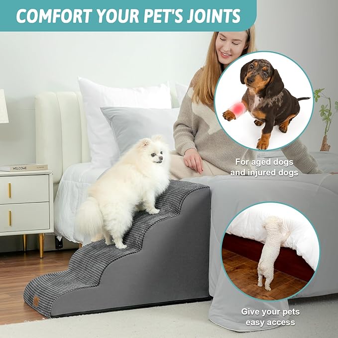 - NOTE & CHOOSE: This staircase is not suitable for large dogs. The inner foam is not washable. Note: Please cover the cover before the sponge is fully fluffy to avoid being unable to cover. 2 layers are suitable for chairs, 3 layers are suitable for sofas or couches, 4 layers are suitable for beds, and 5 layers are suitable for high beds or cars. Please be sure to confirm whether the size is suitable for you first