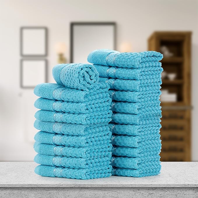 Ample Decor Washcloth Set of 20 Sky Blue 100% Cotton - Qucik Dry Popcorn Textured - Mulaayam Collection - 12 X 12 Inch