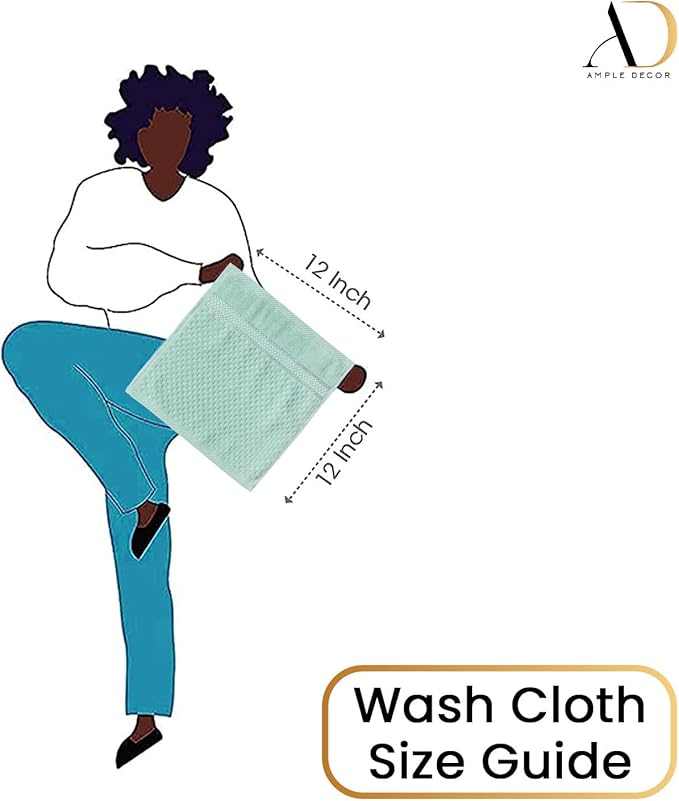 Ample Decor 100% Cotton Washcloths Set of 20 12 X 12 Inch - Highly Absorbent, Popcorn Textured - Mulaayam Collection - Mint Green 20Pcs