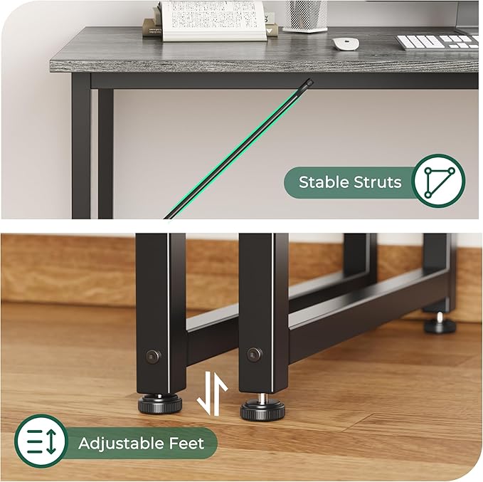 - 【Reinforced Structure】Crafted from durable particleboard and thick steel tubes, this work from home desk offers a stable and sturdy structure. Reinforcement struts beneath the tabletop provide additional stability, ensuring its longevity for working or gaming