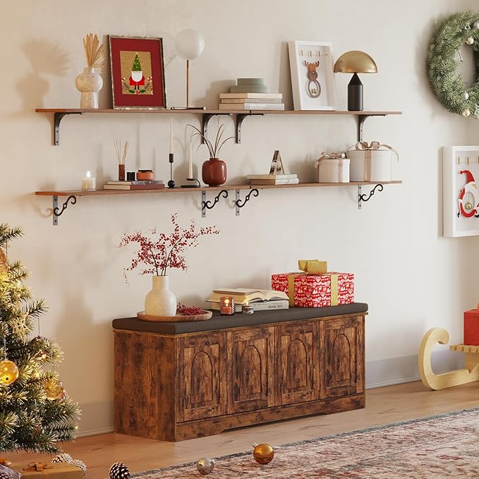 DINZI LVJ Long Wall Shelves, 47.3" Large Floating Shelves Set of 2, Farmhouse Display Shelf Wall Mounted with Heavy Duty Brackets, Easy Assembly for Kitchen, Bathroom, Bedroom, Balcony, Rustic Brown