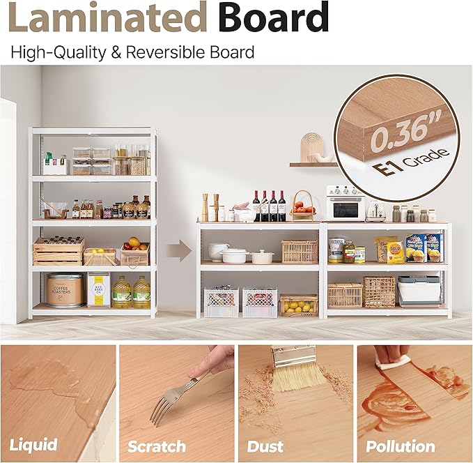 - VERSATILE 2-IN-1 MODULAR DESIGN – Easily converts from a tall 5-tier rack into two separate shelving units, tables, or workbenches. Perfect for organizing kitchens, pantries, closets, and living rooms.