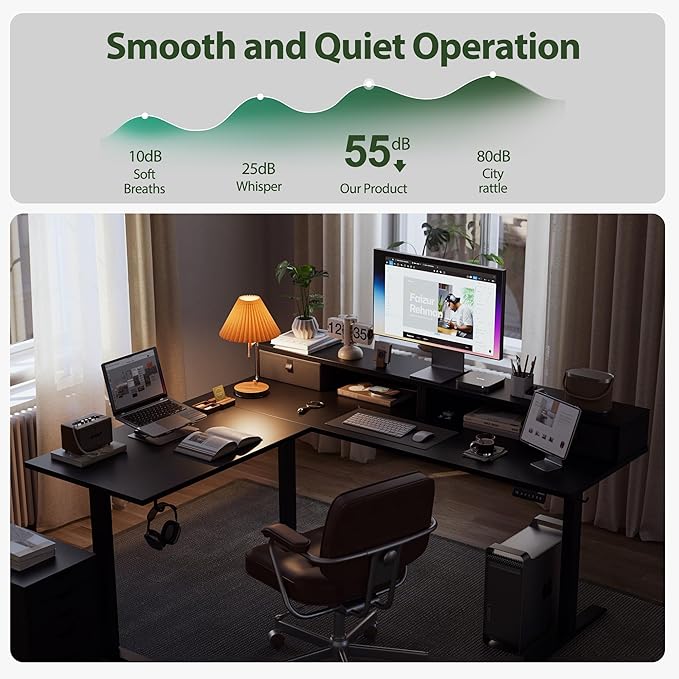 - 【L Shaped Design】The L-shaped extra-large desktop can provide ample office space and can be adapted to any corner of your home.