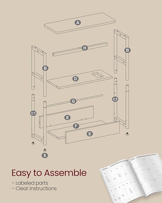 - [Sturdy and Durable] Constructed with quality particleboard panels and a robust steel frame, this 3-tier nightstand can hold up to 220 lb, offering a stable and durable storage solution
