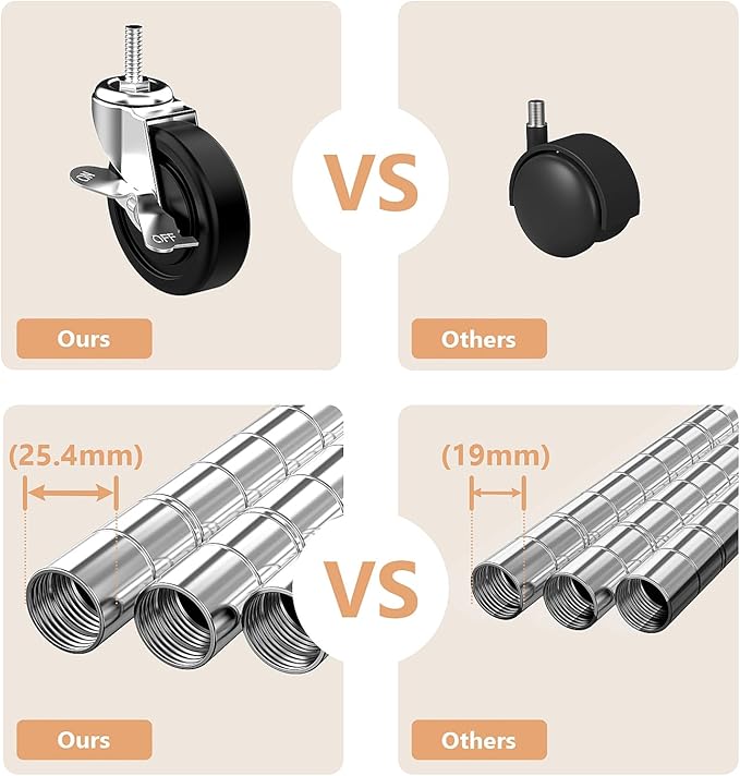 - Sturdy And Long-lasting: The garment rack is made of high-quality carbon steel and anti-rust materials. The diameter of the pipe is 25.4 mm which is thicker than others, so that ensures stability, sturdiness, and durability