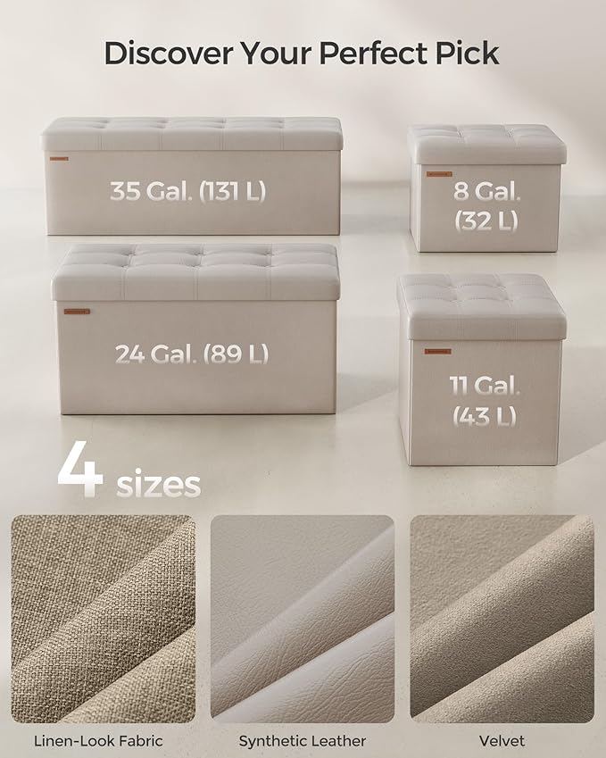 - 【MULTIPURPOSE】Place this storage chest in the bedroom as a bed end bench, in front of the sofa in the living room as a footrest, or in the hallway as a shoe bench—you have the final say!
