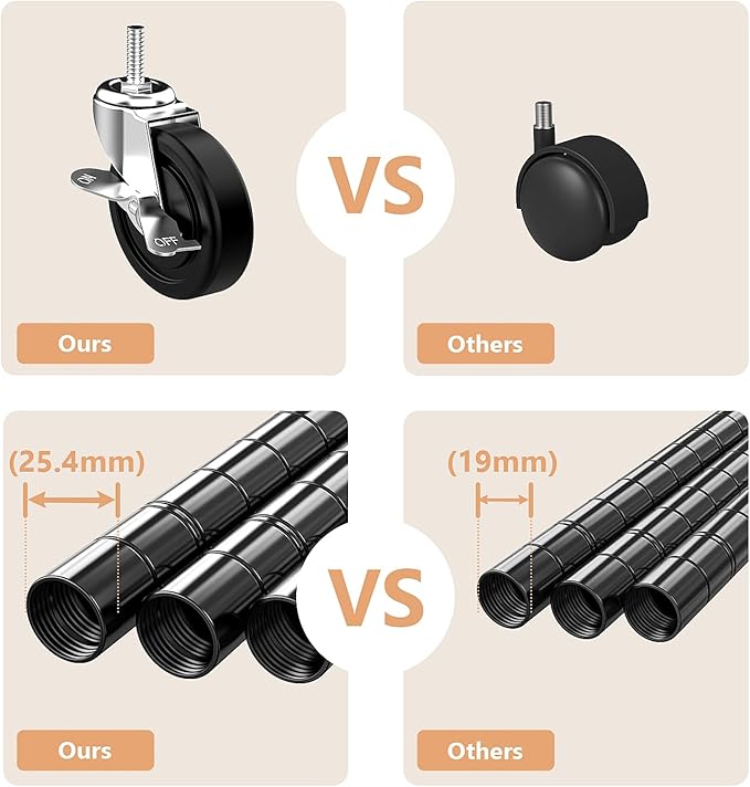 - Sturdy And Long-lasting: The garment rack is made of high-quality carbon steel and anti-rust materials. The diameter of the pipe is 25.4 mm which is thicker than others, so that ensures stability, sturdiness, and durability