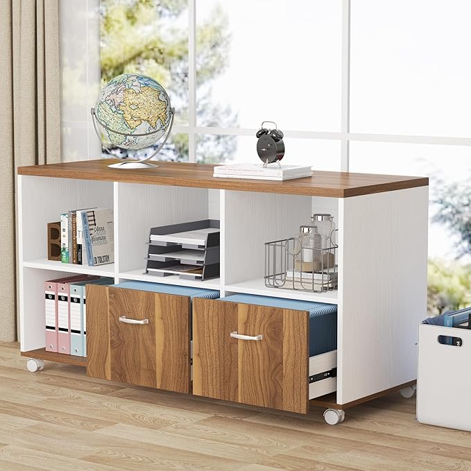 - Desk with Cabinet: The 47.2" W file cabinet includes 2 file drawers for documents and 4 open shelves for supplies. It helps keep essentials organized and within reach, meeting diverse storage needs in a compact design