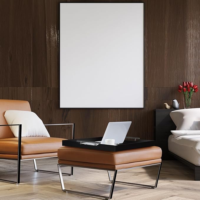 Large Square Ottoman Tray 24 x 24 x 2 Inch Wood Serving Tray with 4 Coasters and Metal Handles for Food Coffee Tea Table Sofa Living Room Home Housewarming Gift(Black)