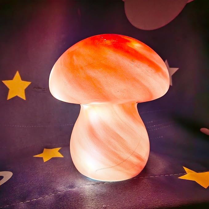 - Charming Mushroom Design: Elevate your space with our adorable mini table lamp featuring a delightful mushroom shape. The glass lampshade, coated with advanced spray paint, enhances its vibrant and appealing colors.