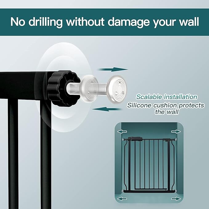 - Easy to install & Unique Matte Design-Our tension indoor safety baby gates extra wide for indoor and outdoor comes with 4 adjustable pressure bolts, which is easy for quick installation: no tools required, no need drilling holes and no damage to your wall.The unique Matte design makes the narrow baby gate and extra wide baby gate more stylish and reduce the scratches.
