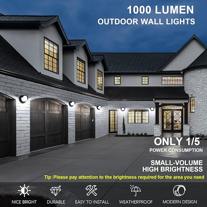 - Surprisingly Excellent Lighting: 1000LM High brightness LED outdoor wall light, RA>85 6000k Daylight light is soft and not harsh, round design realizes wide angle lighting, even light without dark corners and shadows, even at dark night, it can also clearly illuminate every corner