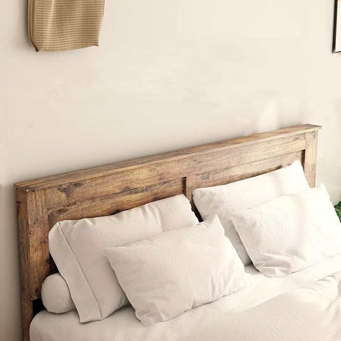 - Industrial Style: Headboard consists of vintage wooden boards with unique design and novel style. Footboard is slightly higher than the platform part of the bed frame, which can play a certain role in fixing the mattress and preventing it from moving outward.
