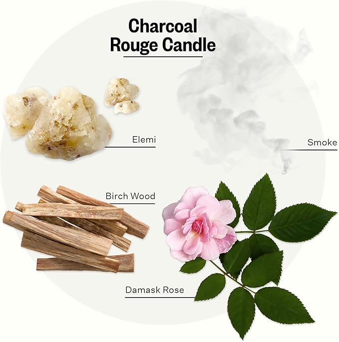 - The Fragrance: Charcoal Rouge combines velvety damask rose, crushed geranium leaf bathed in spicy elemi resin with hints of lemon and infused with the smoky and earthy essence of burning birch to create an intoxicating and romantic fragrance.