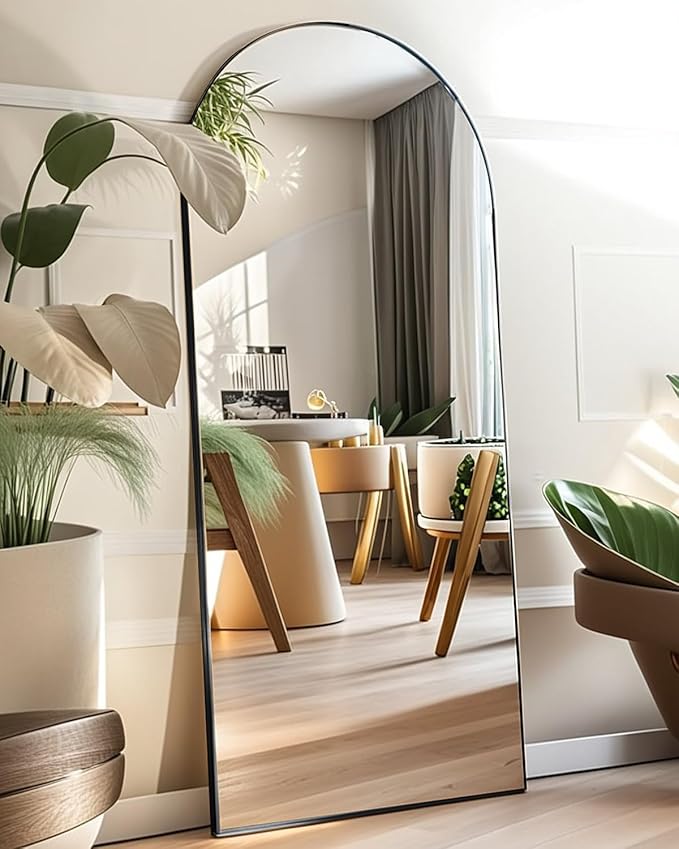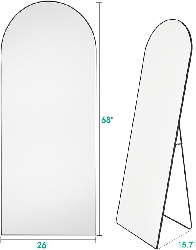 Full Length Mirror, Arched Floor Mirror with Stand, 26"x68" Oversized Floor Mirror, Wall Mirror Full Length Freestanding, Wall Mounted Mirror for Bedrooom Living Room, Black