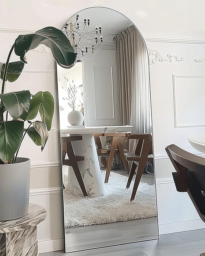 - √【MODERN DESIGN】Arch Large Mirror,The top arch design with brushed metal frame is the perfect combination of elegance and texture. Gives the mirror a classic look and fits any room for dressing.