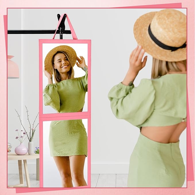 Foldable Portable Full Length Mirror for Dorm Dance Backstage Camping Travel Hanging Folding Makeup Body Mirror for Dancers Artists Home Aestheticians Spa(Pink,33.5" X 13.4")