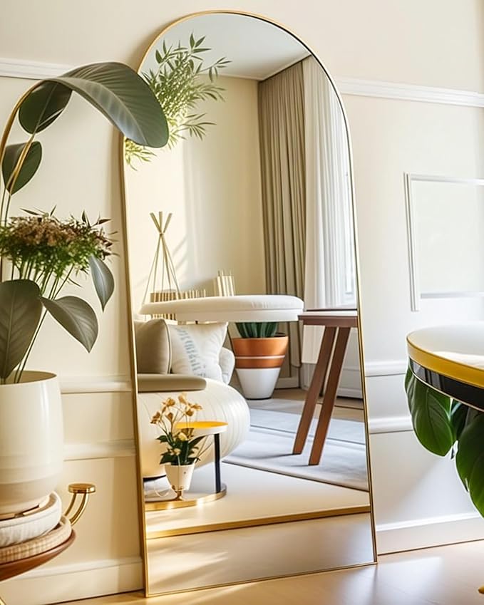 Full Length Mirror, Arched Floor Mirror with Stand, 26"x68" Oversized Floor Mirror, Wall Mirror Full Length Freestanding, Wall Mounted Mirror for Bedrooom Living Room, Gold