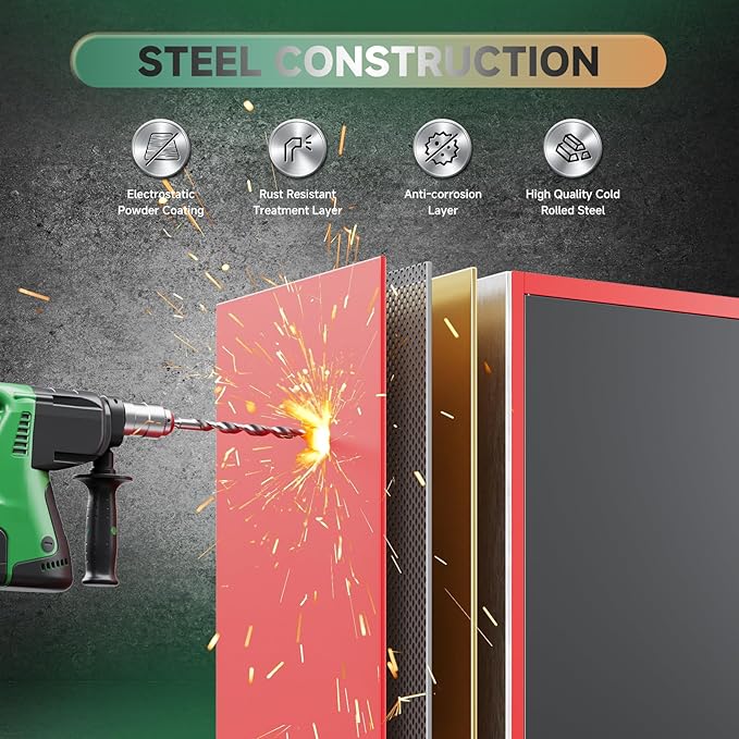 - Unique Design:Steel storage cabinet adopts a new black and red color scheme, which is fashionable and beautiful, perfectly blends with other home decorations