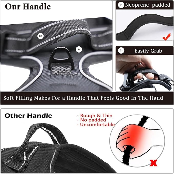 No Pull Dog Harness, Reflective Comfortable Vest Harness with Front & Back Easy Control Handle Adjustable Soft Padded Pet Vest for Small to Large Dogs(Gray,XL)