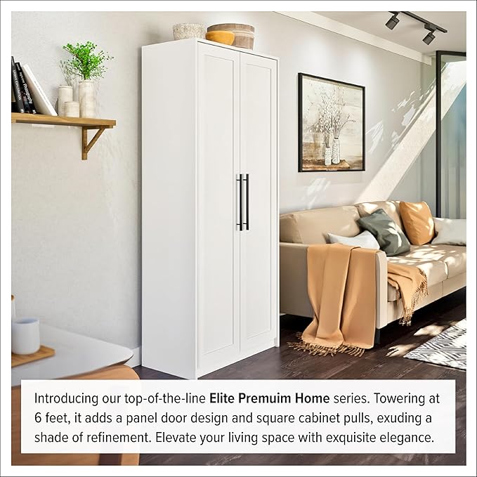 Prepac Elite Premium Home Storage Cabinet with Doors and Shelves, White Storage Cabinet with 5 Shelves for Kitchen, Bathroom 16" D x 32" W x 72" H