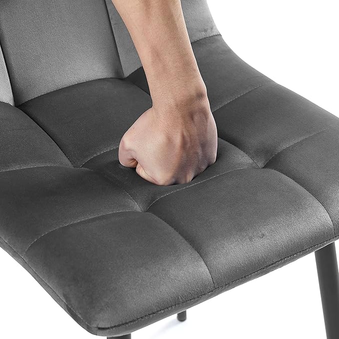 NORDICANA Grey Velvet Dinner Chairs Set of 2, Modern Armless Dining Side Chairs with Metal Legs for Kitchen Living Room Vanity