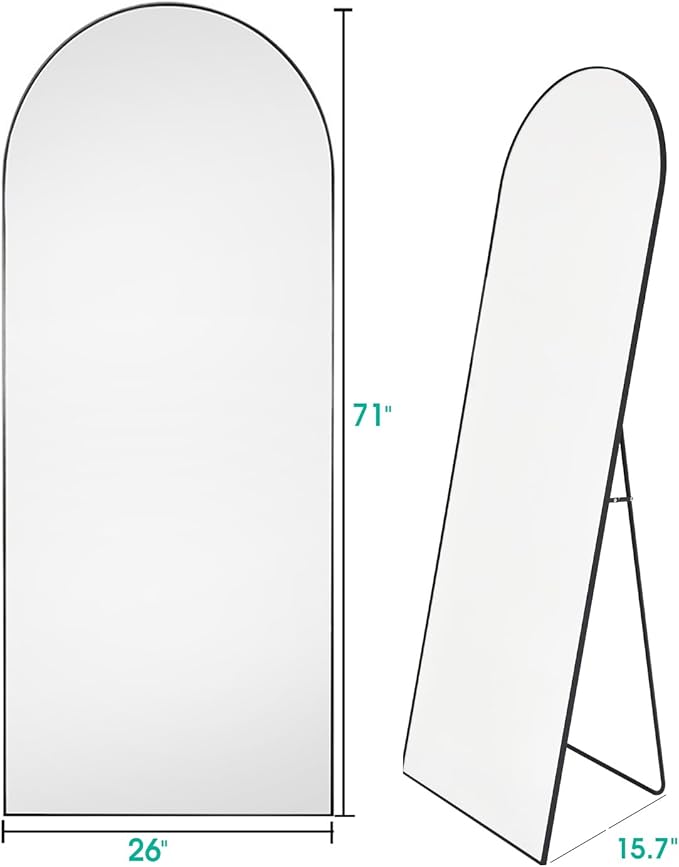 Full Length Mirror, Arched Floor Mirror with Stand, 28"x71" Oversized Floor Mirror, Wall Mirror Full Length Freestanding, Wall Mounted Mirror for Bedrooom Living Room, Black