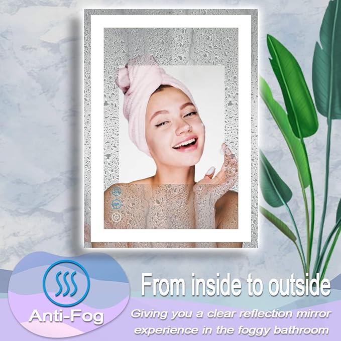 - 😎【TOP QUALITY & LONG ENDURANCE】T5.0MM Copper Free Eco-friendly Glass mirror, which is good for protecting you and environment.Aluminum alloy material back support and Fully enclosed backplate design, that prevent fog from entering the circuit of the mirror.Energy efficient LED light strip,excellent illumination and low consuming energy,efficient LED light strip bring high quality and durable use experience. The mirror has a memory function. When the power is turned off and then restarted, it will return to the previous state of use.