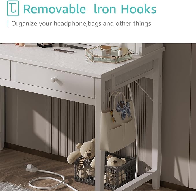 - Modern Simple Style Design: Computer desk with 4 ππππ§ππ πΏπ§ππ¬ππ§π¨, the addition of this feature renders the desk lightweight and facilitates its mobility. The desk with small drawers and side hutch offers storage solution to your home office supplies. Table with headphone hook, it can organize your headphone, bags and other things.