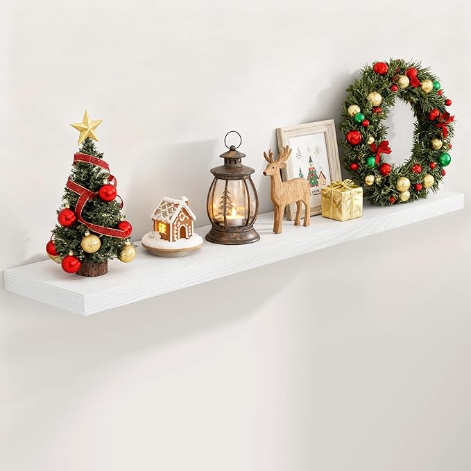 Fun Memories 55 Inch Floating Shelves for Wall, 55x9.3 Large Floating Shelf for Bedroom, Kitchen, Bathroom, Wall Mounted Rustic Wood Shelves with Invisible Bracket for Books, Decor, White