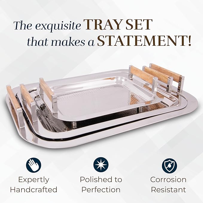 - CLASSIC SILVER TRAYS There's nothing quite like the classics when it comes to home decor. These gold trays effortlessly match a variety of colors and styles. With a simple but beautiful design, it presents a low-key artistic flair. Also comes with a 100% recyclable gift box.